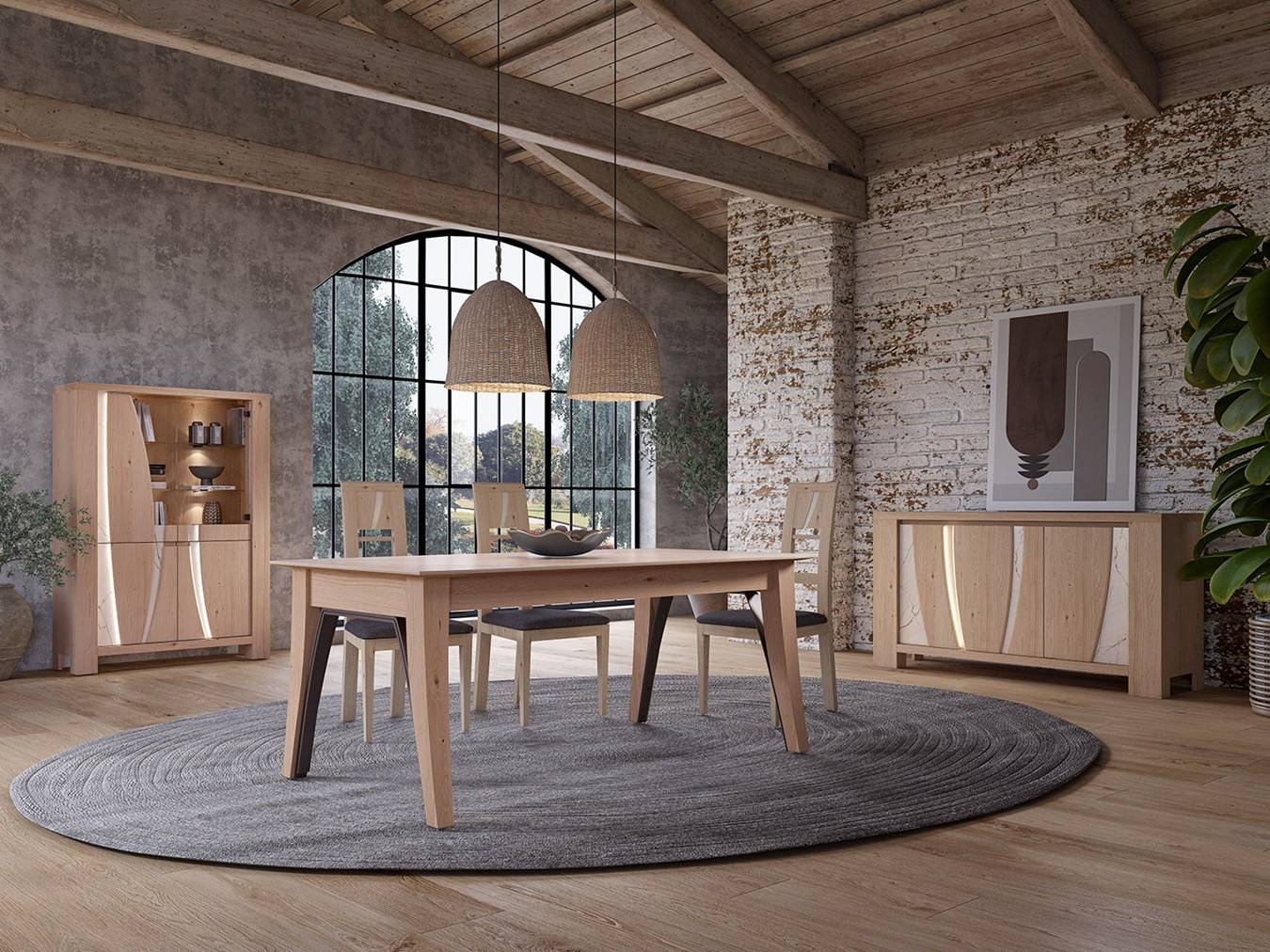 1 tiroir intérieur, éclairage led sur facades de portes inclus.. Placage chêne, céramique Dekton Trilium ou Roma